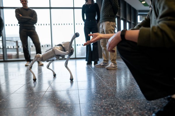 Für die empirische Forschung steht am Lehrstuhl ein Unitree Go2 Edu Roboterhund zur Verfügung – eine Plattform für Prototyping, Experimente und die Evaluation verkörperter KI-Systeme in realen Szenarien.
